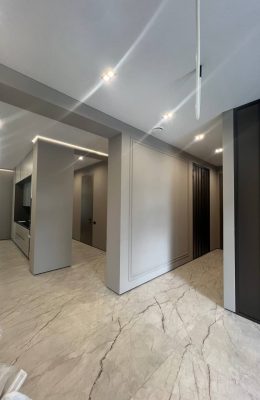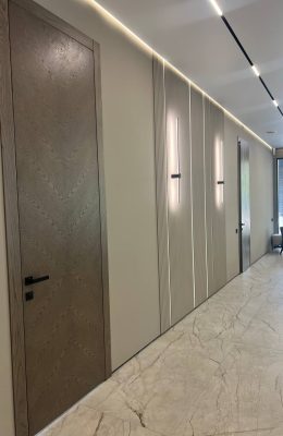 Мастерами Лидекор были проведены работы по нанесению на стены архитектурной краски с эффектом замши Lanors «Nebula» цвет NB_122 Lanors и декоративной краски МКА Paint «Замша» в цветах: SP35 (Фуро Альбинос), SP74 (Хищный Оцелот), SP78 (Мшистый Барбус). Поставкой материала занималась наша компания.